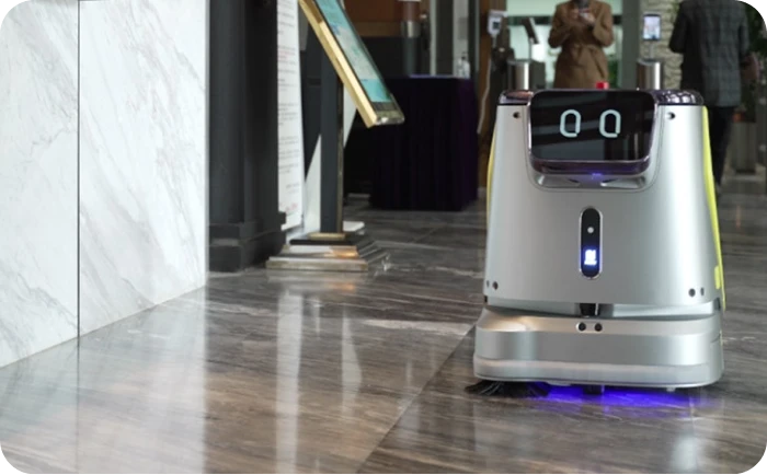 ロビーや客室廊下の清掃をロボットが定時で実施します。人の手では時間がかかる広面積も、高い清掃品質を維持しながら自動で完了。常に清潔な空間でお客様をお迎えし、施設の格式を保ちます。