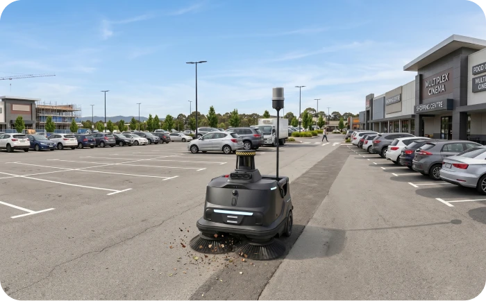 駐車場、半屋外のテラスなど、落ち葉や砂利、大きなゴミが散らかりやすいエリアでは、大容量のゴミ箱を備えた「高効率掃き掃除」を活用します。