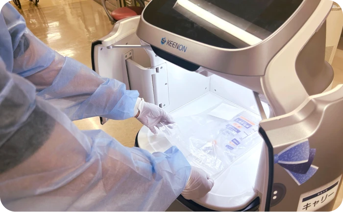 検査室と採血室の検体ボックス運搬、薬剤部と病棟間での薬剤運搬、ME室と病棟間のME機器などの運搬に活用できます。