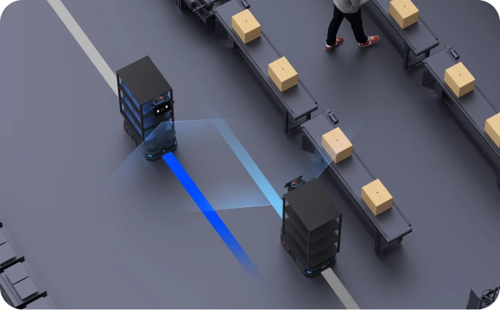 DFA Roboticsの配膳ロボット、清掃ロボットは高性能カメラとセンサーを搭載しており、人や障害物を検知し自動で回避もしくは停止するため、安全にご利用いただけます。