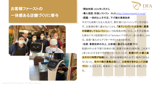 「お客様へのおもてなしを第一に。」配膳ロボットで人手不足を解消し、お客様ファーストの一体感ある店舗づくりに寄与!