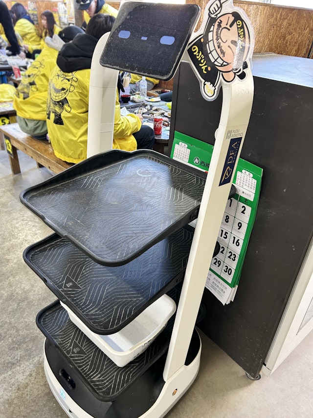 お店への客足は伸びる一方で、年々深刻化する人手不足の状況に悩んだ結果、配膳ロボット「PuduBot 2(プードゥ ボット ツー)」を“ものづくり補助金”を利用して2台導入した。