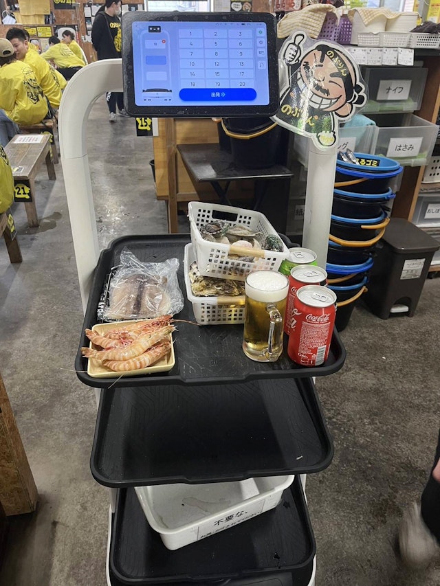 牡蠣小屋のぶりんでは、アルバイトが集まらないためスポットワーカーも活用しているという。初めてのぶりんで働く人や、接客が苦手な人でも、配膳ロボットがいればオペレーションは問題ないそうだ。
