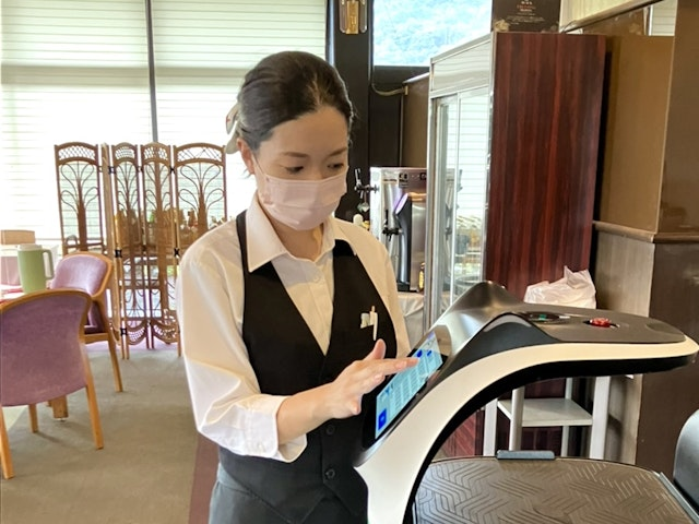 “利用されるお客様にはご年配の方も多く、操作が難しいと言う方もいらっしゃいました。ですが、BellaBot(ベラボット)を導入したことで従業員一人当たりの時間ができ、お客様に合わせて人の手で運ぶこともできるように。少ない人数でも従来の接客が行えました。”