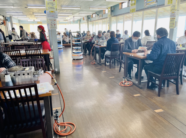 これにより、1号機が料理台から近い席と遠い席どちらにも配膳が必要だった場合でも、ロボットの走行スペースが混み合い動けなくなることはなく、追い越したり道を譲ったりしながらスムーズに料理提供が行えるようになった。