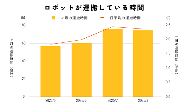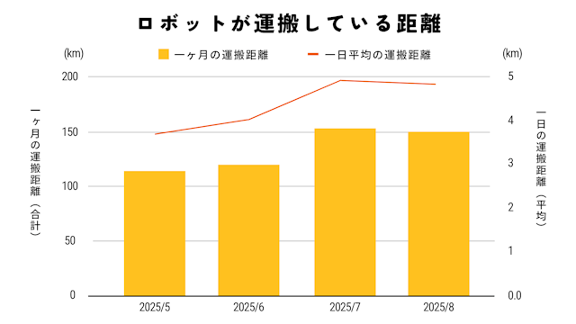 ・1日平均4.4km、約2時間分の搬送による移動を代替し、スタッフの身体的負担を大幅に軽減