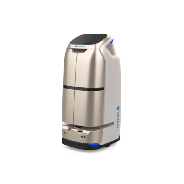 DFA Roboticsが取り扱う搬送ロボット「KEENON W3(キーノン ダブリュースリー)」は、1度に最大4部屋まで運搬が可能なロボットです。エレベータ連携への対応や、客室の内線電話からの到着通知機能を搭載しております。(※)高級感のあるデザインで、ラグジュアリーなホテルの空間との親和性も高く、各国のホテルで導入実績を持ちます。
