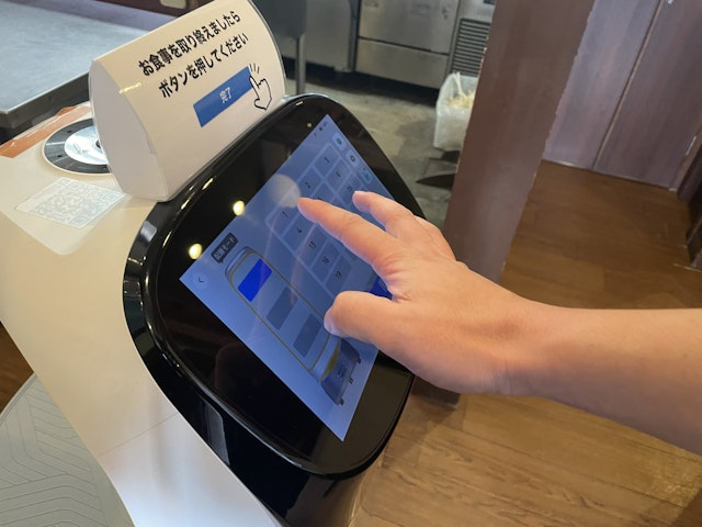 お客さまの反応はというと、意外と配膳ロボットに慣れている方が多く、ロボットが走行している様子を眺めたりロボットから受け取ることにも抵抗がないように見えました。お子さま連れのお客さまが、ロボットに会いに食事に来ていると言ってくださることも。」
