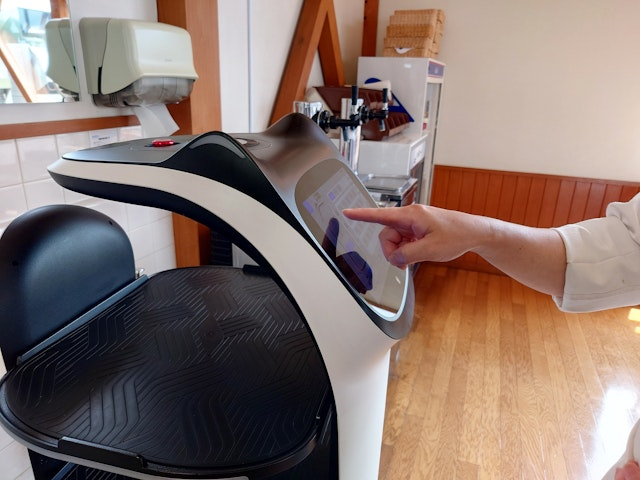 中村さま「我々のレストランではラーメンも提供しているので汁物がこぼれないか、またお客さまとぶつかったりしないか、テーブルや椅子の位置がズレてもちゃんと避けて通るのかなどが気になっていました。実際に使ってみて、事故もなく安全に動いていたのと、0.5人分ほどの工数削減に繋がることがわかり、導入を決めました。」