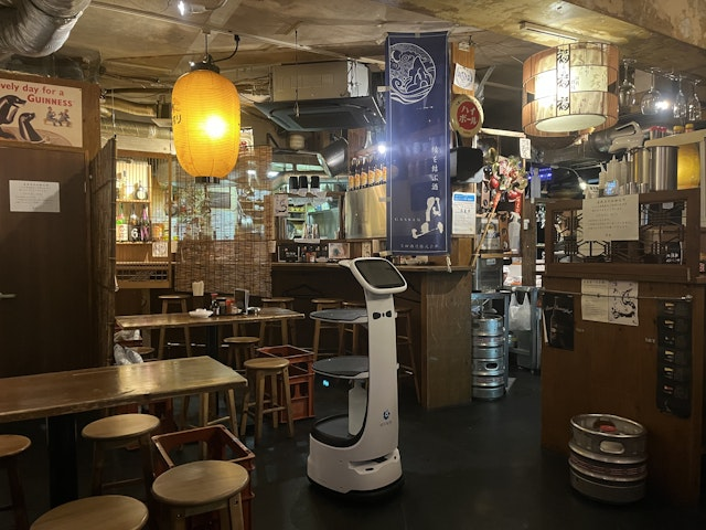 稲岡さま「はじめの頃は、全ての配膳をロボットで…とも考えていましたが、常連の方が多い当店では私が運ぶことで注文してくれることも多いんです。全ての配膳を任せるのではなく、配膳全体の3割程度を任せることで、料理の注文は受けつつ、店舗運営しやすくなりました。