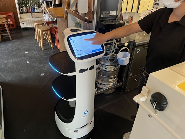今後どうやったらひとりでも店を回せるか、を真剣に考える日々でしたが、周りで導入している店舗が増えてきた配膳ロボットに目をつけ、複数社にテスト導入を依頼することに決めました。」