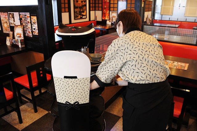 人でなくてもよい作業はロボットに任せ、お客さまへのサービスや対話を増やすことを目的にネコ型配膳ロボット「BellaBot(ベラボット)」のテスト導入を行なった五味八珍だが、当初はロボットがお店の中を走行して違和感がないか懸念もあったと伊藤さまは話す。