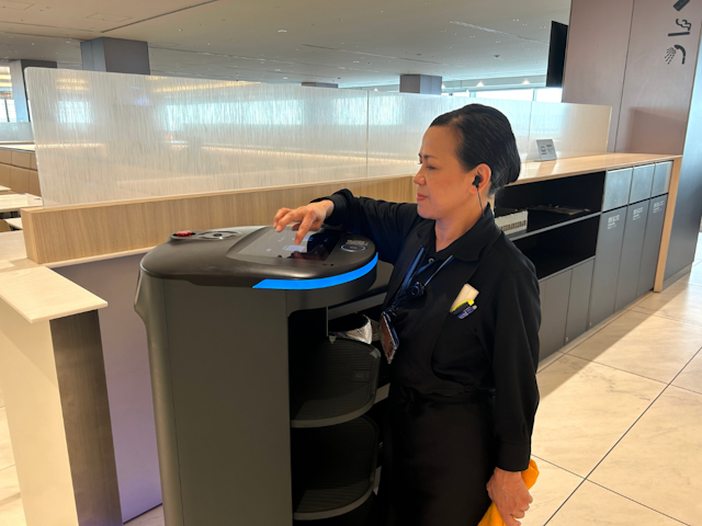 本田さま「導入してから数ヶ月が経過しましたが、特に海外からのお客さまが非常に興味を示してくださり、写真を撮られる方もいらっしゃいます。直接的にお客さまと関わるわけではないですが、最先端のロボットがいるラウンジということで楽しんでいただけているのではないかと感じております。ロボットの見た目も、ラウンジに合った落ち着いたデザインのため雰囲気になじんでいます。」