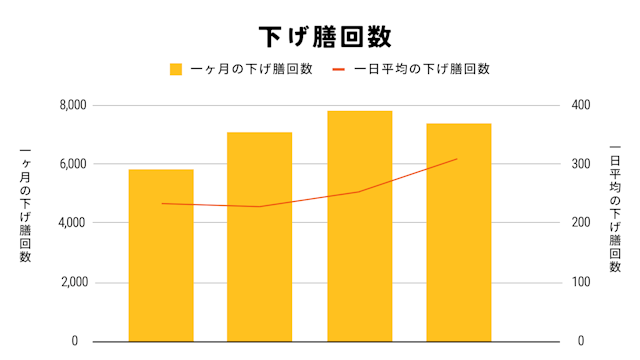下記は、あるラウンジでの稼働データだが、1日あたり平均255回の下げ膳をロボットが代替していることがわかる。移動時間にすると12.7時間。仮に時給1,500円として試算した場合、月あたり約57万円、年間684万円のコスト削減となる。