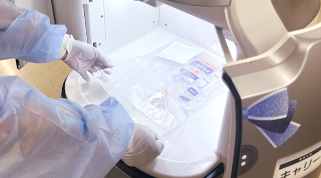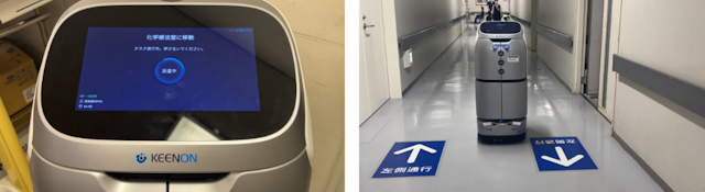 中央検査室と採血室、あるいは救急部との間で、血液などの検体を安全かつ迅速に搬送します。これまではスタッフが検体の入った容器を持って移動していましたが、ロボットが代替することで、頻繁に発生する移動時間を大幅に削減します。スタッフは検査業務そのものに集中でき、検査結果が出るまでのリードタイム短縮にも寄与します。