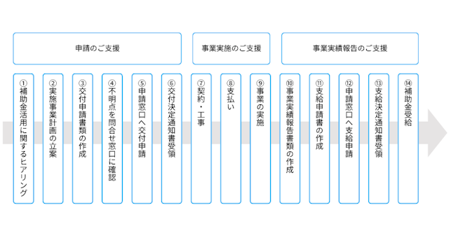 申請の際、お客さまのご契約コンサルタントさまでご対応が難しい場合でも、弊社から専門補助金コンサルタントのご紹介が可能です。煩雑で手間のかかる申請作業も、安心してお任せください。