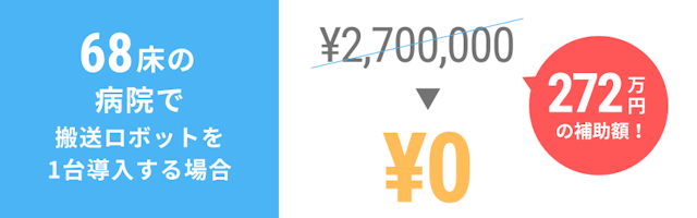 搬送ロボットの機体価格270万円に対して272万円の補助が受けられるため、実質1台0円で導入可能!