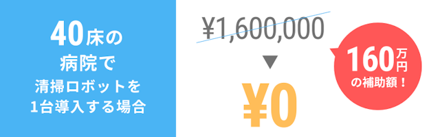 清掃ロボットの機体価格160万円に対して160万円の補助が受けられるため、実質1台0円で導入可能!