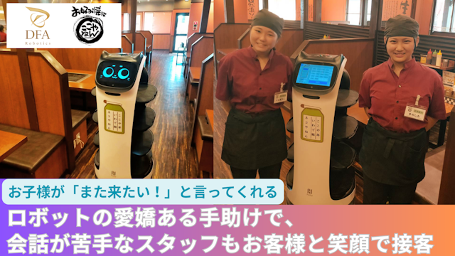株式会社DFA Roboticsは、「次世代の社会インフラの創造」をビジョンに掲げ、最先端ロボットによる世界中の「ヒト」と「ビジネス」の価値向上を目指す企業で、情報を発信しています!2021年11月より本格的に配膳ロボット事業へ参入し、約1年で3,250台以上を全国に導入豊富な設置・導入の知見とアフターサポート力やデジタル化・DX化の推進が特徴です。