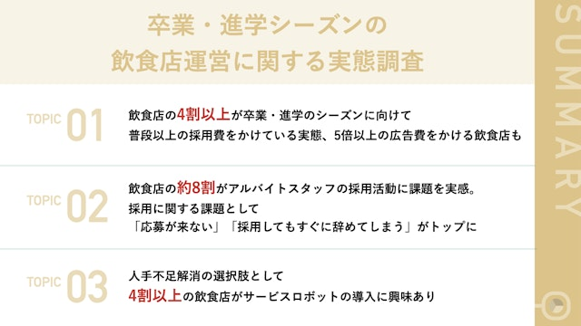 ・Topic 01 飲食店の4割以上が卒業・進学のシーズンに向けて普段以上の採用費をかけている実態、5倍以上の広告費をかける飲食店も