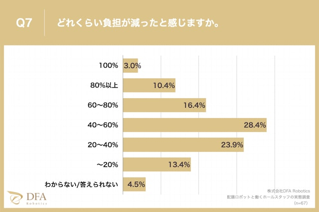 また、「配膳・下げ膳業務の負担が減った」と回答した方に、「どれくらい負担が減ったと感じるか?」と質問したところ、4割以上負担が減ったと回答する割合が58.2%となりました。