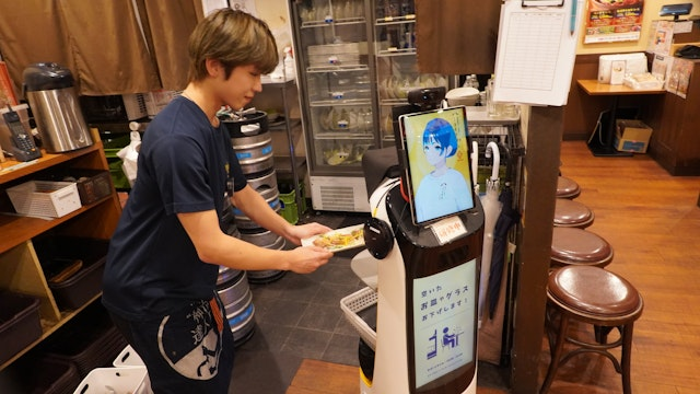 今回の実証実験では、リモートで働くスタッフがロボットを操作し接客、注文、配膳および下げ膳を行っています。