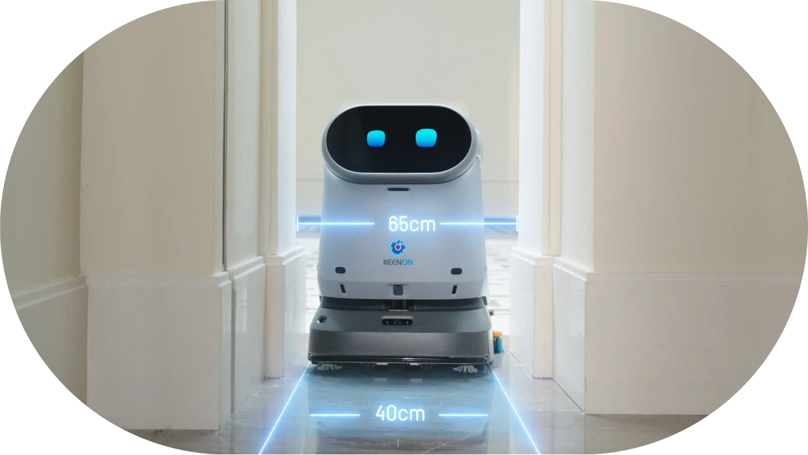 「ロボットを導入したいけれど、うちの施設は通路が狭いから…」と諦めていませんか?「KEENON C40」の最小通過幅はわずか70cm。デスクが密集するオフィス、ベッドや機材が多い病院・介護施設、什器が並ぶ店舗の通路など、従来機では走行が難しかったエリアもスムーズに清掃します。これまで人の手でしか掃除できなかった場所まで自動化の範囲を広げ、清掃レベルの均一化に貢献します。