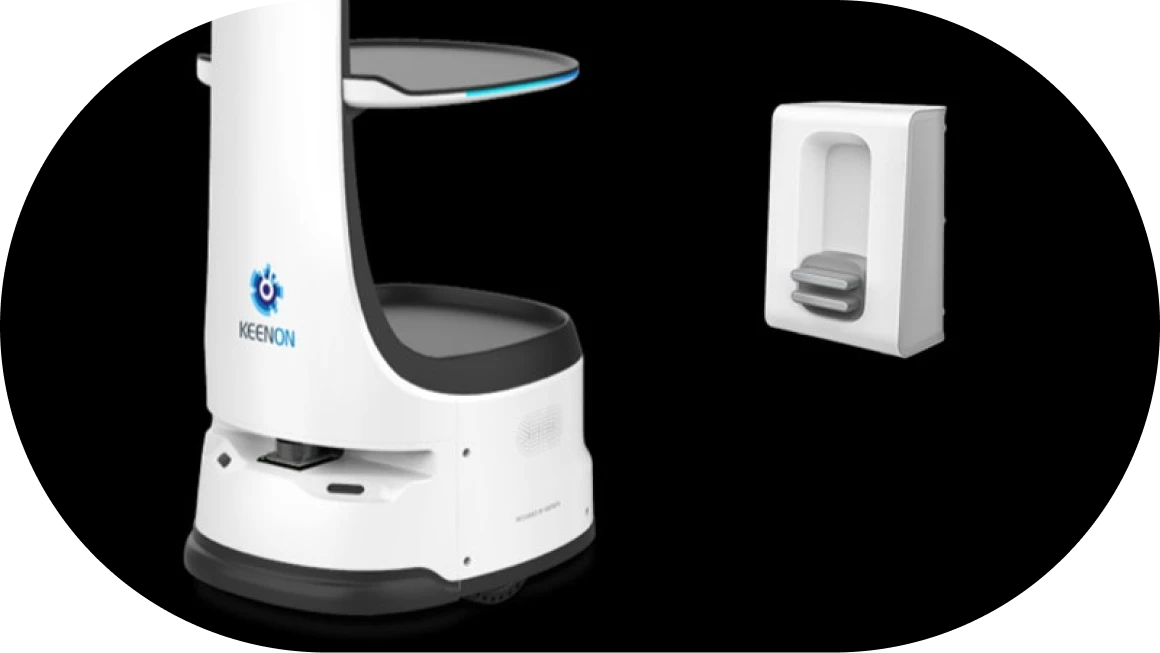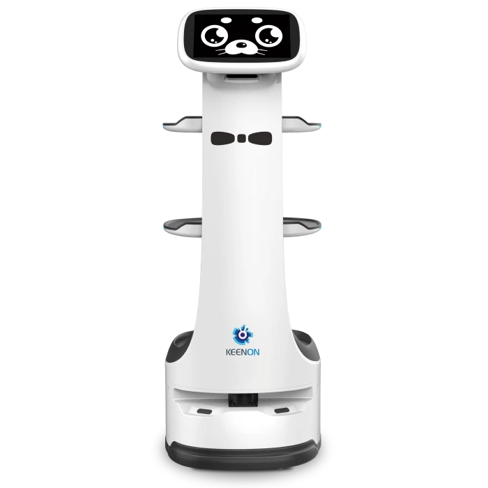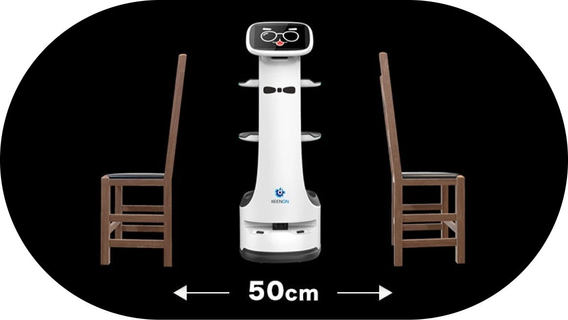 KEENON T8(キーノン・ティーエイト)は、55cmの通路でも稼働できる機動性の高い配膳・運搬ロボットです。